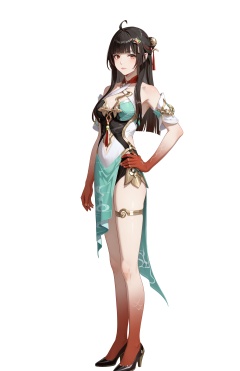 score_9, score_8_up, score_7_up,realisticA full-body portrait of a young girl, standing gracefully, pastel art style, high-key lighting, shoujo manga influence, hd quality, delicate details, full body, full shot, standing, looking at viewer, (solo:1.2), simple background, white background, hand on own hip, BREAKlingsha, default clothes, red hands, red feet, 1girl, long hair, black hair, breasts, ahoge, high heels, cowboy shot, BREAKTEST, <lora:lingsha-pony-Tanger-000018:0.8>, masterpiece, best quality,