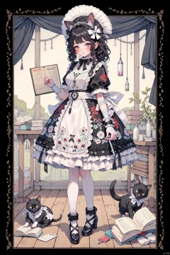 lolita fashion,animal ears,cat,dress,black de hair,intravenous drip,horns,white legwear,shoes,braid,bow,long hair,cat ears,frills,veil,cross,1girl,black dress,black footwear,eyepatch,bride,bride,black,bride,black,cat,curtains,apron,frilled dress,standing,looking at viewer,blunt bangs,lolita fashion,bucket,pantyhose,solo,wooden floor,syringe,bandages,book,blood bag,cat tail,ribbon,nurse,white bow,multiple girls,latin cross,clothed animal,indoors,why hairs,bandaid,heterochromia,star (symbol),key,gothic lolita,animal (animal),frilled apron,lace,blood,no nose,noose,scissors,child,puffy sleeves,pill,hat,cat girl,holding bucket,clipboard,petticoat,no mouth,tag,neck,lace trim,maist,medicine,thermometer,english,sleeves,text,maist,noun,see-through,traditional media,jewelry,black ribbon,habitat,holding syringe,safety pin,two tails,border,black background,
