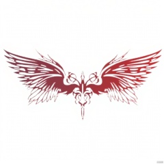 masterpiece,best quality, solo, simple background, white background, monochrome, wings, no humans, flandre scarlet,qfl,Emblem pattern