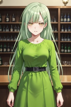 muzumi, 1girl, long hair, green hair, bangs, yellow eyes, hair ornament,hairclip,<lora:muzumi-pony:0.8>