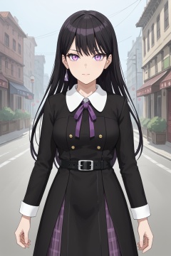 taki, 1girl, solo, long hair, bangs, black hair, purple eyes<lora:taki:0.8>