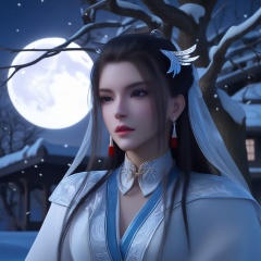 <lora:832-DA-XL-少年白马醉春风-晏琉璃-白衣:0.8>, (,1girl, ,best quality, ),,  picture-perfect face,   clean, masterpiece,     cinematic lighting, cinematic bloom, fantasy,  , unreal, science fiction, ((,1girl, pov,))(((,tree, 1girl, full moon,snowing,snow ,solo,     solo focus,  long_hair, looking_at_viewer,  )))  (rich:1.4,)     prestige, luxury, jewelry, diamond, gold, pearl, gem, sapphire, ruby, emerald, intricate detail, delicate pattern, charming, alluring, seductive, erotic, enchanting, hair ornament, necklace, earrings, bracelet, ,(sit),