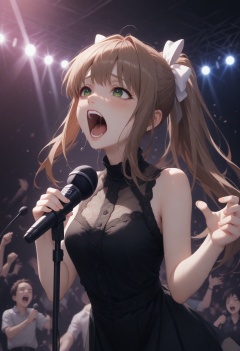 score_9,score_8_up,score_7_up,Monika from Doki Doki Literature singing "Love?" by Strapping Young Lad,screaming the lyrics with sheer passion into a microphone,superbly detailed,emotional,extreme metal,