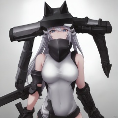 (Masterpiece),high quality,(white background:1.2),looking at viewer,outline,simple background,upper body, cowboy shot,looking at viewer, (((arms at side))),  scarf,single thighhigh,boots