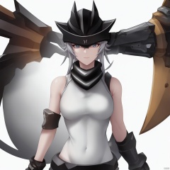 (Masterpiece),high quality,(white background:1.2),looking at viewer,outline,simple background,upper body, cowboy shot,looking at viewer, (((arms at side))),  scarf,single thighhigh,boots