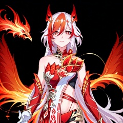 (masterpiece:1.3),(the best quality:1.2),(super fine illustrations:1.2),(Masterpiece),high quality,high detail,((white background:1.2)),looking at viewer,(SOLO:1.4),outline,simple background,fullbody,, messy hair, bare shoulders,gauntlets, mechanical parts, white skin, phoenix, shorts, collarbone, jewelry, twintails, eyelashes, elbow gloves,armor,red legwear,thighhighs,boots,facial mark,head wings,red gloves,two,tone hair,earrings,gloves,tassel,leotard,skirt,dress,elbow gloves,twintails,bare shoulders,tattoo,phoenix,ribbon,red ribbon,bangs,white hair,orange eyes,streaked hair,fu hua,orange hair,fiery hair,hair between eyes,multicolored hair,fiery wings,jewelry,hair ornament,gloves,hair ribbon,pattern on hair,logo,yellow pupils,diamond shaped pupils