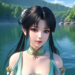 <lora:834-DA-XL-诛仙-碧瑶:0.8>, (,1girl, ,best quality, ),,  ,ultra detailed 8k cg,   ,masterpiece, (( , )) , lake,upper body,   (cleavage),,  (),