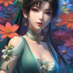 <lora:834-DA-XL-诛仙-碧瑶:0.8>, (,1girl, ,best quality, ),,,anime,(masterpiece, top quality, best quality, official art, beautiful and aesthetic:1.2), (1girl)	, , (cleavage),, extreme detailed,(fractal art:1.3),colorful, flowers ,highest detailed,(by Jeremy Lipking)    (cleavage),,  (),