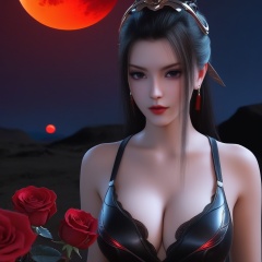 <lora:835-DA-XL-晏琉璃-婚服:0.8>, (,1girl, ,best quality, ),,  ,,ultra realistic 8k cg,, ,masterpiece, (( , )),, ,science fiction,mole, ,    ,red moon, black rose,     (cleavage),,  (),