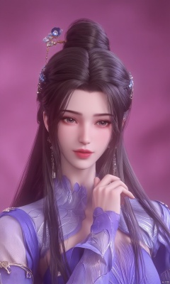A photorealistic full-body portrait of a stunning 21yo hubggirl with perfect hands. She wears a vibrant purple sweater and double braids adorned with tiny earrings. Her shoulder-length purple hair is styled in intricate braids that cascade down her back. Her eyes are a deep, rich purple, framed by thick eyelashes and subtle makeup. A bold red lip color adds a pop of brightness to the overall gradient background, which transitions seamlessly from pink to purple. The subject's gaze is direct, with a hint of sassiness as she wears a trendy hat and sports a confident smile. Shut up, indeed!