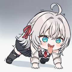 masterpiece,best quality,<lora:all fours_a31-xl:1>,chibi,all fours,open mouth,tongue out,full body,<lora:alisa_four_in_one_a31-xl:1>,1girl,alisa_mikhailovna_kujou,hair_ribbon,ahoge,