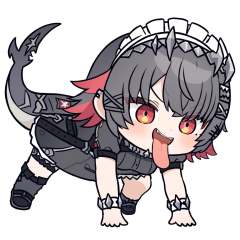 masterpiece,best quality,<lora:all fours_a31-xl:1>,chibi,all fours,open mouth,tongue out,full body,<lora:ellen_joe_a31-xl_v2:1>,1girl,ellen_joe,solo,tongue_out,tongue,short_sleeves,maid_headdress,shark_tail,frills,black_dress,white_apron,virtual_youtuber,black_footwear,fins,medium_breasts,belt,