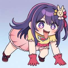 masterpiece,best quality,<lora:all fours_a31-xl:1>,chibi,all fours,open mouth,tongue out,full body,1girl,hoshino_ai_\(oshi_no_ko\),rabbit_hair_ornament,solo,hair_ornament,star_\(symbol\),gloves,symbol-shaped_pupils,star-shaped_pupils,idol,dress,pink_gloves,idol_clothes,open_mouth,star_hair_ornament,pink_dress,blush,smile,turtleneck_dress,frills,frilled_dress,sleeveless,pink_ribbon,ribbon,sparkle,frilled_gloves,sleeveless_dress,heart_brooch,<lora:oshi_no_ko_in_one_a31-xl_v1:1>,