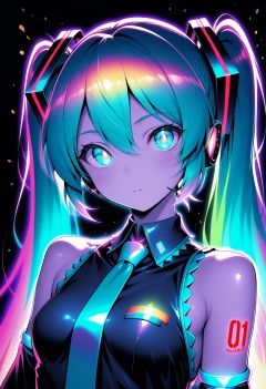 beast_quality,masterpiece,8k,Hatsune Miku,limited palette,black background,colorful,vibrant,glowing outline,neon,blacklight,looking at viewer,
