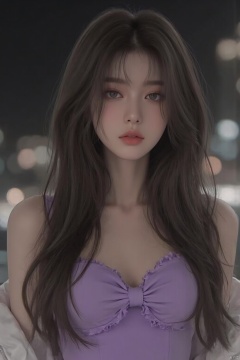 (1 lady), (Best quality at best:1.4), (ultra - detailed), (extremely detailed CG unified 16k), A Beautiful Woman with Perfect Figure: 1.4, Sharp Focus: 1.2, very detailed, High-definition RAW color photo, professional photoshooting, amazing face and eyes, cosmetics, (amazingly beautiful girl), ((frederica bernkastel)), ((purple bow, dress, frills, white kneehighs, kneehighs bow, mary janes, cat tail, tail ornament)), standing, sexyposture,(Dark and stylish huge gothic cathedral from outside, city lights at night, city lights:1.3), (look from down), realistic cinematic face, head to feet long wide zoomed out view, full body long view, photorealistic, ((realistic natural purple hair style, purple eyes, long hair)), gorgeous, extremely beautiful face, perfect model beauty, pout mouth, Highly Detailed Face and Skin Texture, Detailed Eyes, Double Eyelids, Big Breasts, Smile, cleavages, western, (masterpiece), best quality, high resolution, extremely detailed, blurred background, depth of field, cinematic lighting, amazing legs, high heels, clear and well-cared skin,