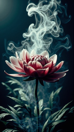 A stunning horror a professional (film grain:1.2) photography, realistic photo of a dark cursed atmospheric smoking AHaunted Peony, gas spirit rising up, high resolution photography, ultra resolution, 4k, 8k, 16k, HDR, DOF, studio photography, professionalism<lora:AHauntedFlux:0.75>photography,eye-level shot,centered subject,portrait orientation,(8k,RAW photo,best quality,masterpiece:1.2),depth of field,laser lighting,(solo focus,one frame),(front view:1.2),shot on Sigma fp with Sigma 45mm f-2.8 DG DN