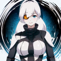 (masterpiece:1.3),(the best quality:1.2),(super fine illustrations:1.2),(Masterpiece),high quality,high detail,(white background:1.2),looking at viewer,(SOLO:1.4),outline,simple background, 1girl,monocular eye patch,hair ribbon