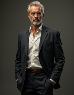 (masterpiece realistic:1.2),best quality,masterpiece,original,extremely detailed <lora:FLUX_CNfruta:0.8>1boy,old male, facial hair, muscular male, mustache,  old man, suit,pants