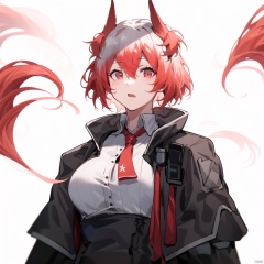 gradient hair,thighhighs,feathers, open clothes, pleated skirt, red ribbon, miniskirt, knee boots, suit, animal ears, red necktie, floating hair, necklace, thigh holster, black skirt, boots, black jacket, black footwear, thighs, collared shirt, thigh strap, pink hair, off shoulder, phoenix, flaming eye, flame, fiery wings, fiery hair, white shirt, necktie, holding gun, skirt, shirt, jacket, holding weapon, gun, black gloves,short hair,hair ornament,red eyes,bangs,hair between eyes,off shoulders,multicolored hair,dress,white hair,jewelry,red hair,long sleeves,gem,streaked hair,1girl, bangs