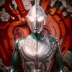 white bodysuit,white gloves,legwear,gloves,boots,logo,cover,mask,plugsuit,bodysuit,green pattern on body,white tight-fitting,white footwear,helmet,leather suit,ultraman,latex