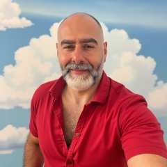 cloud,manly,portrait,solo,swim briefs,wrinkled skin,red shirt,1boy,EURPCarp,solo,bald,beard,t-shirt,