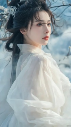 Chinese portrait photography, featuring ancient style beauties and unparalleled beauties. The lower part of the image is shrouded in white mist, creating a bright environment amidst clouds. Canon camera portrait shooting, 135mm, aperture 1.4, ultra realistic real person post production special effects, long shot,wide shot, A side portrait of a beautiful woman with messy blue hair, wearing a white chiffon suit, beautiful cheeks, immortal style, Tai Chi pattern, background with the Five Elements Eight Trigrams, ethereal and mysterious atmosphere, high resolution, fine texture, soft lighting, high quality, masterpiece, master's work, ultra high definition, 8K