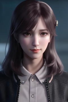(Clear lines, high definition, Best quality,  masterpiece, 4K),1girl, solo, long hair, looking at viewer, bangs, brown hair, black hair, brown eyes, closed mouth, jacket, upper body, lips, blurry background, realistic, XuXin