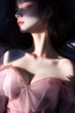 (Realistic, Hyperrealistic: 1.1)XHC sleep,1girl,solo,sleeping,lying,Silver hair,closed eyes,on back,bare shoulders,pillow,collarbone,off shoulder,tongue,short hair,realistic,soft light,(Klein Blue and Light Pink dress:1.3),(see-through:1.3),epic realistic,(dark shot:1.5),(darkness:1.5),(soft light:1.2),(breast:1.3),(cleavage:1.3),<lora:XHC soft light_20240716125739-000018:0.9>,(masterpiece, top quality, best quality, official art, beautiful and aesthetic:1.2),natural skin texture,high detailed skin,(detailed skin:1.5),photorealistic,extreme detail,lifelike,crisp,precise,35mm photograph,film,bokeh,professional,highly detailed, <lora:XHC soft light_20240716125739:0.8>