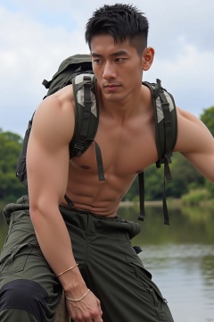 jzns,biu,1man,asian,solo, male focus,handsome,sportman,outdoors, magnificent,masterpiece, realistic, best quality, highly detailed,