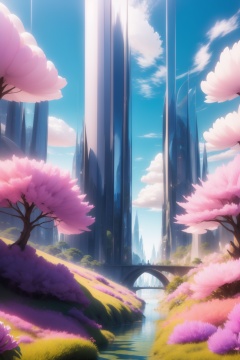 <lora:AgainWonderlandForest:1>,AgainWonderlandForest, scenery, flower, sky, cloud, day, no humans, tree, blue sky, plant, bridge,  fantasy,