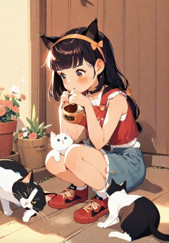 1girl,cat,