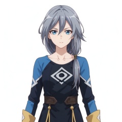 (white background:1.2),looking at viewer,(SOLO:1.4),outline,simple background,upper body, cowboy shot,looking at viewer,(((arms at side))),  fu hua, fu hua animever, long hair, bangs, hair between eyes, blue eyes, grey hair, blue hair, hair ornament, low-tied long hair<lora:lanyi-pony:0.8>