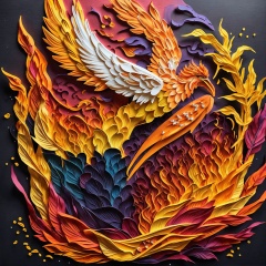 (no humans),phoenix,wings,fire,flame,fantasy,abstract,(portrait),Highly detailed,(ultra-detailed),(best quality,masterpiece:1.5),<lora:paper art:0.9>,paper art,