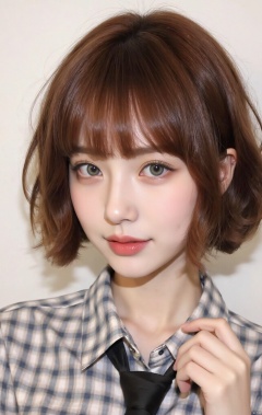 1girl, solo, short hair, bangs, brown hair, blue eyes,