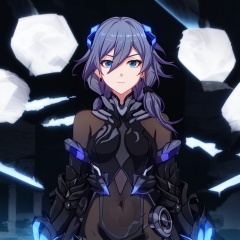 hair ornament, plugsuit, armor, hair scrunchie, bodysuit, thighhighs, black bodysuit, horns, fu hua, elbow gloves, hair between eyes, leotard, very long hair, braid, gloves, mecha, long hair<lora:符华-月轮-2.0:0.8>