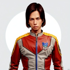 collar, choker,belt,boots,emblem,military uniform,logo,pants,armor,uniform,bodysuit,choker,belt pouch, jacket, collar, helmet, gloves, fingerless gloves, belt, logo,1boy, belt, red jacket