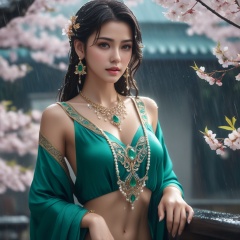 <lora:836-DA-XL-朴正允-绿-B:0.8>, (,1girl, ,best quality, ),, ,ultra detailed 8k cg,            cinematic lighting, cinematic bloom, (( , )),,  , unreal, science fiction,  luxury, jewelry, diamond, pearl, gem, sapphire, ruby, emerald, intricate detail, delicate pattern, charming, alluring, seductive, erotic, enchanting, hair ornament, necklace, earrings, bracelet, armlet,halo,masterpiece, (( , )),, realistic,science fiction,mole, ,cherry blossoms,(((, , ultra high res, (photorealistic:1.4), raw photo, 1girl, wet clothes, rain, sweat, ,wet, )))(( , ))   (cleavage),,  (),