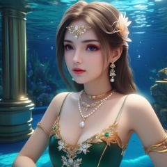 <lora:837-DA-XL-斗罗大陆-千仞雪-幼年:0.8>, (,1girl, ,best quality, ),,masterpiece, ((((, solo,  , ,solo focus, ,underwater, )))) ,ultra realistic 8k cg,   clean, masterpiece,     cinematic lighting, cinematic bloom,  (( , )),, , unreal, science fiction, luxury, jewelry, diamond, gold, pearl, gem, sapphire, ruby, emerald, intricate detail, delicate pattern, charming, alluring, seductive, erotic,(sit), , enchanting, hair ornament, necklace, earrings, bracelet, armlet,,(cleavage),,