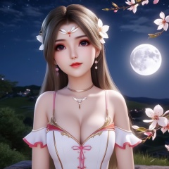 <lora:837-DA-XL-斗罗大陆-千仞雪-幼年:0.8>, (,1girl, ,best quality, ),,  ,ultra realistic 8k cg,, ,masterpiece, (( , )),, ,   ,   cure blossom, full moon,night,night sky,  (cleavage),,  (), ,,