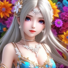 <lora:837-DA-XL-斗罗大陆-千仞雪-幼年:0.8>, (,1girl, ,best quality, ),,,anime,(masterpiece, top quality, best quality, official art, beautiful and aesthetic:1.2), (1girl)	, , (cleavage),, extreme detailed,(fractal art:1.3),colorful, flowers ,highest detailed,()    (cleavage),,  (),