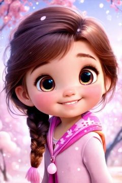 cute little Girl, kawai, big watery eyes, Happy face, looking at viewer, Which clothes, cartoon, wide shot, Disney style