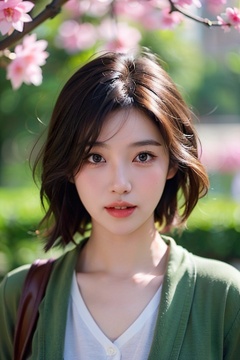 a young Asian woman,1girl,solo,long hair,realistic,lips,parted lips,upper body,blurry background,floating petals,jitome,cute,short hair,