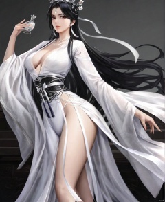 solo,highly detailed,(best quality),((masterpiece)),1girl,black hair,simple_background,long hair,white clothes,hanfu,looking_at_viewer,peiyuhan,goatwillow