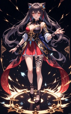 Anime style, (masterpiece: 1.3), best quality, animation works, 1girl, solo, long hair, bangs, hanfu, black hair, wide sleeve flowing fairy skirt, medium hair, black hair, black leopard, photos, 8k, complex, highly detailed, majestic, digital photography, broken glass, (fine and delicate beautiful eyes: 1.2), hdr, lifelike, high-definition, animation style, key vision, vibrant, studio animation, highlydetailed