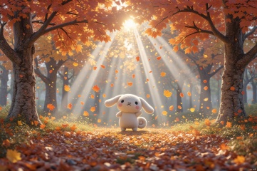 Cinnamoroll is under a maple tree,A serene scene unfolds beneath a majestic maple tree, its vibrant orange and red leaves rustling in the gentle breeze. The camera captures a intimate framing of the scene, focusing on a narrow path winding through the fallen foliage. Soft, warm lighting casts a cozy glow, as if the autumn sun is peeking through the branches. A few leaves float effortlessly down the path, creating a sense of tranquility and inviting the viewer to step into this peaceful atmosphere.8k, CG,best quality,HDR,UHD,camera uses 35mm f/2.0 wide-angle lens, uses 35mm f/2.0 wide-angle lens