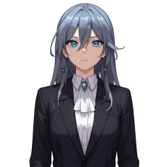 (white background:1.2),looking at viewer,(SOLO:1.4),outline,simple background,upper body, cowboy shot,looking at viewer,(((arms at side))),  fu hua, fu hua mangaver, long hair, bangs, hair between eyes, blue eyes, grey hair, hair ornament, blue hair, shirt, white shirt, polo shirt, black jacket, jacket, long sleeves<lora:fuhua-lifu-pony:0.8>