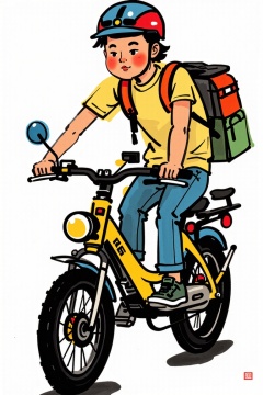 New ink,blush, boy riding electric bike,<lora:models/1382/ed8ffe6b-08.safetensors:1:1>