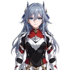 (white background:1.2),looking at viewer,(SOLO:1.4),outline,simple background,upper body, cowboy shot,looking at viewer,(((arms at side))),  fu hua armorver, fu hua, long hair, bangs, blue eyes, grey hair, blue hair, hair ornament, hair between eyes<lora:fh-armor-bai-pony:0.8>