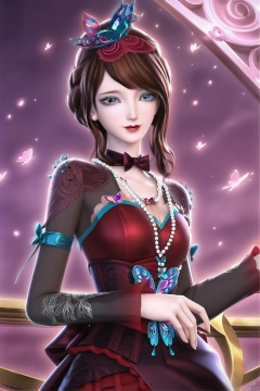 masterpiece, best quality, masterpiece,best quality,official art,extremely detailed CG unity 8k wallpaper,1girl,solo,looking at viewer,brown hair,hat,dress,blue eyes,hair ornament,bug,butterfly,pearl necklace,ribbon choker,beads,gem,makeup,bowtie,jewelry,bow,Cherry Blossoms,Thigh boots