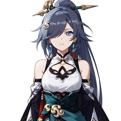 (white background:1.2),looking at viewer,(SOLO:1.4),outline,simple background,upper body, cowboy shot,looking at viewer,(((arms at side))),  fu hua, fu hua mangaver, long hair, ponytail, bangs, hair ornament, blue eyes, hair over one eye, jewelry, earrings<lora:yunmo-manga-pony:0.8>